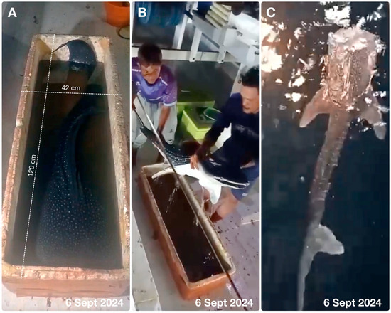 In August 2024, local fishermen reported sightings of small whale sharks measuring only 1.2–1.5 meters. Soon after, a male neonate around 135–145 cm was accidentally caught in a lift-net. These are the first records of neonatal whale sharks in Indonesia, and among the smallest free-swimming individuals ever documented worldwide.
